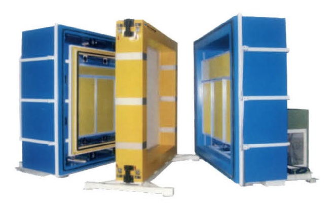 依據(jù)GB/T13475-2008《絕熱 穩(wěn)態(tài)熱傳遞性質(zhì)的測(cè)定 標(biāo)定和防護(hù)熱箱法》,該裝置為防護(hù)熱箱法試驗(yàn)裝置,它是基于一維穩(wěn)態(tài)傳熱原理,模擬四季圍護(hù)結(jié)構(gòu)構(gòu)件的傳熱,將構(gòu)件置于兩個(gè)不同溫度場(chǎng)的箱體之間,熱箱模擬室內(nèi)或夏季室外空氣溫度、風(fēng)速、輻射條件;冷箱模擬室外或夏季室內(nèi)空調(diào)房間空氣溫度、風(fēng)速。經(jīng)過若干小時(shí)的運(yùn)行,整個(gè)裝置均達(dá)到穩(wěn)定狀態(tài),形成穩(wěn)定溫度場(chǎng)、速度場(chǎng)后測(cè)量試件兩側(cè)的表面溫度、空氣溫度、熱冷側(cè)導(dǎo)流屏的表面溫度、表面風(fēng)速、計(jì)量箱壁內(nèi)外表面溫差以及輸入熱箱的電加熱器功率(輸入熱箱的風(fēng)扇功率)等主參數(shù)后,就可以計(jì)算出試件的傳熱系數(shù)、試件不平衡熱損、比熱阻、熱導(dǎo)率、熱冷側(cè)表面比熱阻、總比熱阻。