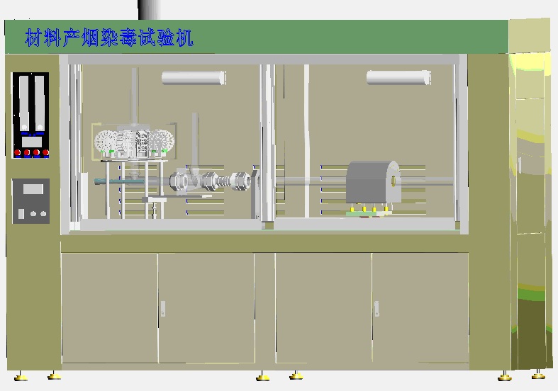 材料在石英管中,經(jīng)等速移動熱輻射加熱形式制取一定濃度的煙氣,模擬實(shí)驗(yàn)動物在煙氣中的染毒試驗(yàn)。在試驗(yàn)當(dāng)中,為了對操作人員及其環(huán)境不產(chǎn)生危害,因此本試驗(yàn)機(jī)安裝在全封閉的一個箱體中,煙氣由排煙機(jī)通過管道排到室外。石英試樣舟有兩種形式放到石英管中,一種是從側(cè)門放入石英管里,另一種是從拉門放入石英管里。這樣能使用戶方便地在實(shí)驗(yàn)室中擺放。該裝置結(jié)構(gòu)簡單,操作方便,外形美觀。