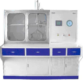 該試驗(yàn)臺(tái)設(shè)計(jì)構(gòu)思來源于機(jī)器人機(jī)械手設(shè)計(jì)方式,采用可編程控制器(PLC)控制氣動(dòng)元件使被試件在冷熱水槽之間,按規(guī)定時(shí)間循環(huán)浸入。該設(shè)備的主要元器件采用日本原裝進(jìn)口,使設(shè)備的可靠性及壽命大大提高。